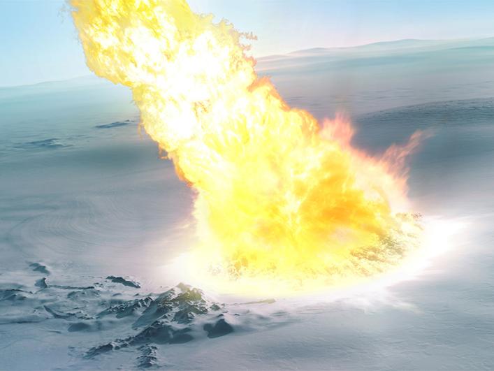 Former AMGC'er Dr. Matthias Van Ginneken is first author a new manuscript in Science Advances describing the explosion of a meteorite above Antarctica some 430000 years ago, and the production of a touchdown event when a vapor jets interact with the ice sheet Right: Touchdo...